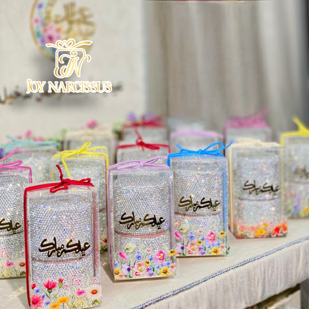 تأتي المجموعة داخل بوكس أنيق مزخرف برسومات فاخرة، منسق بفرو سكري ناعم مع شريطة شمواه وثيم تهنئة خاص بالعيد ليكتمل طابع الفخامة والاحتفال.
