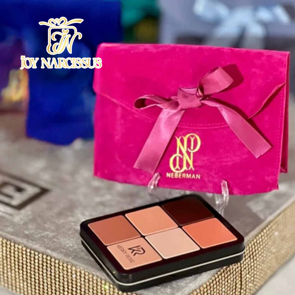 حقيبة مخملية فاخرة بألوان جذابة وتصميم أنيق يجمع بين الفخامة والعملية. تحتوي بداخلها على بالت كنتور وبلشر وروج أصلي عالي الجودة لتكون هدية متكاملة تُسعد أحبابك وتضيف لمسة من التميز في العيد.