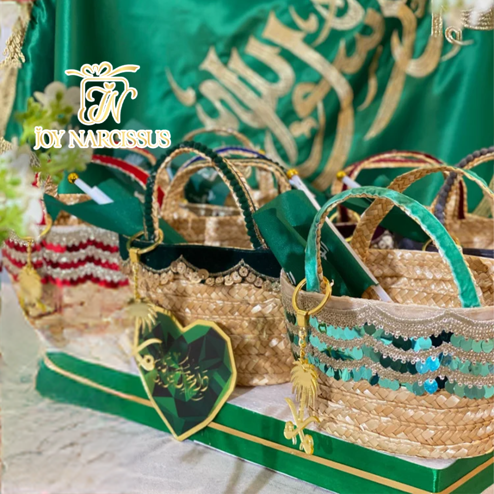 حقائب أنيقة من الخوص بألوان متعددة تحمل شعار اليوم الوطني المعتمد من الهيئة العامة، لتكون اختيارًا مثاليًا للهدايا والتوزيعات في الاحتفالات الوطنية.